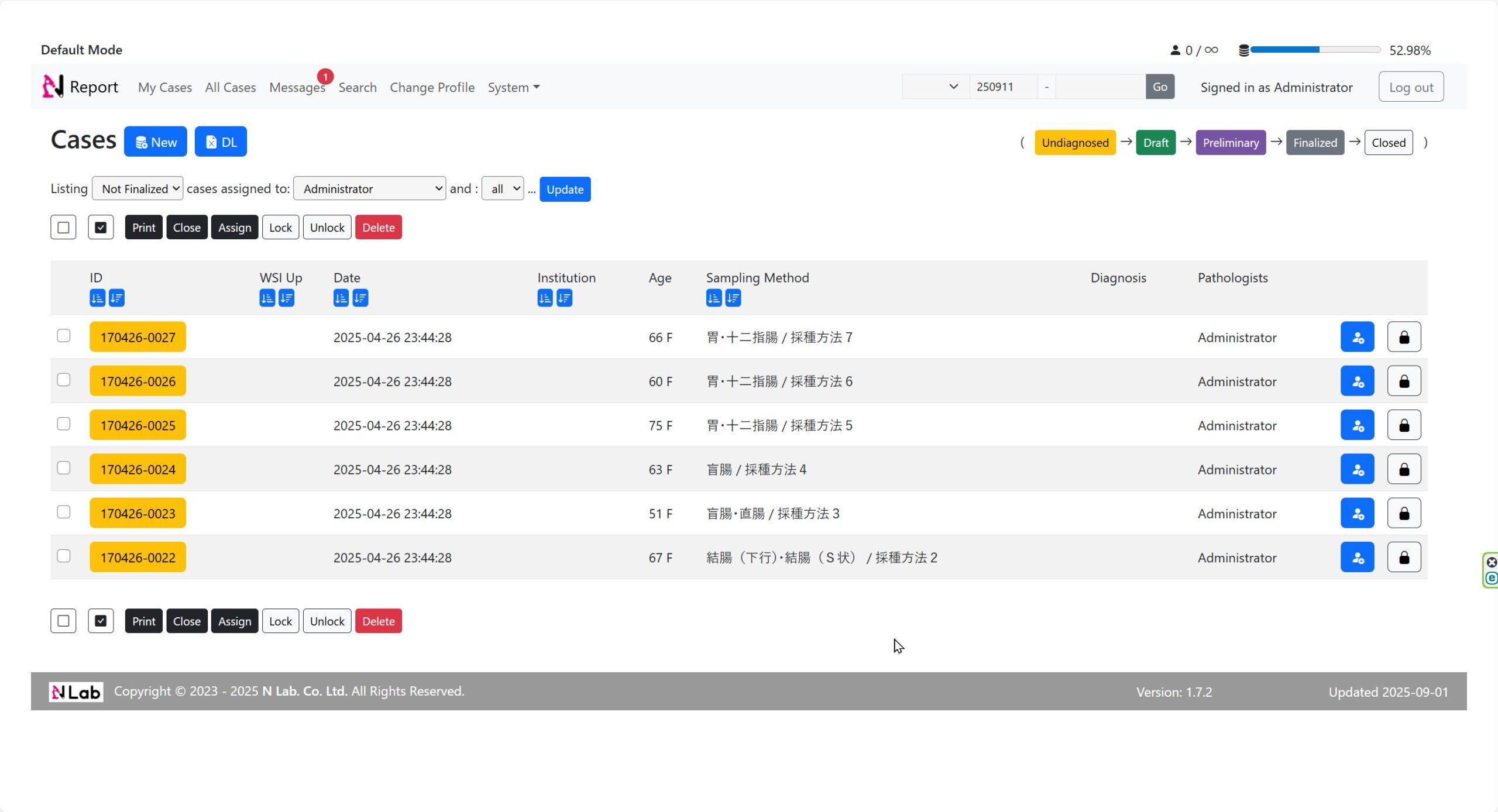 ログインが正常に完了すると、MIXTUREに登録されている症例の一覧画面に遷移します。