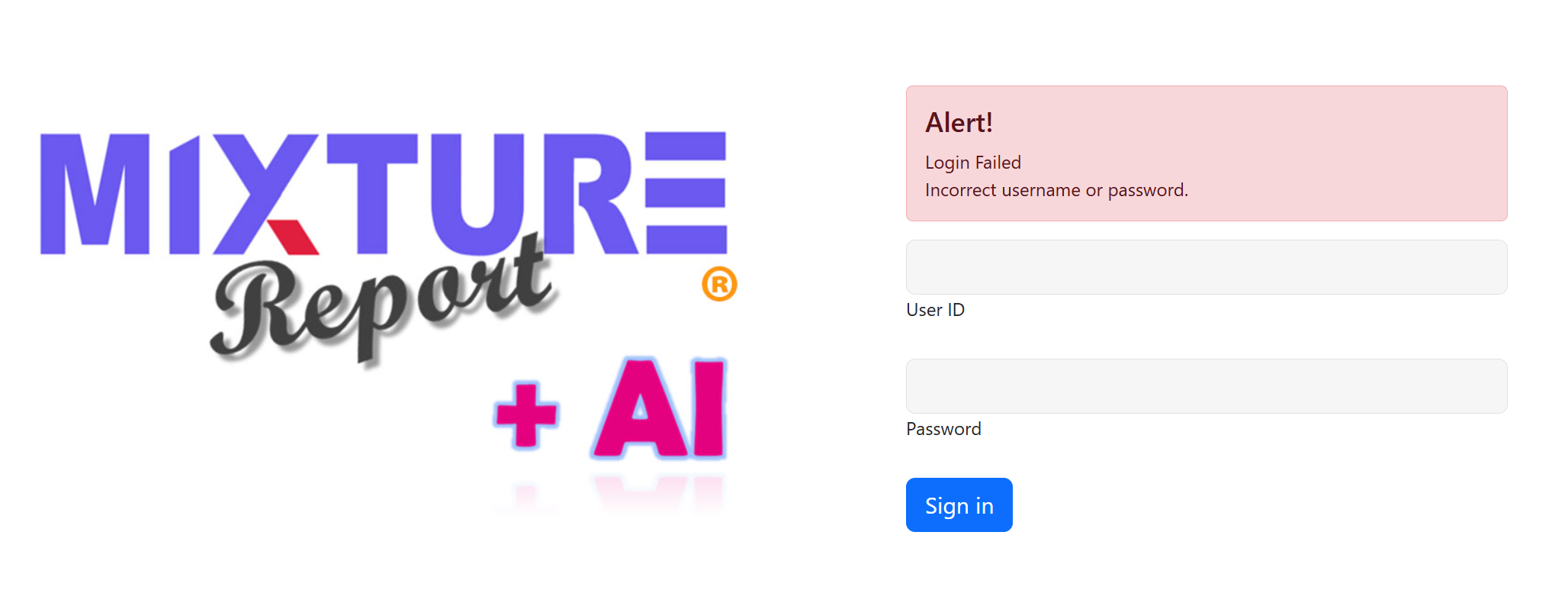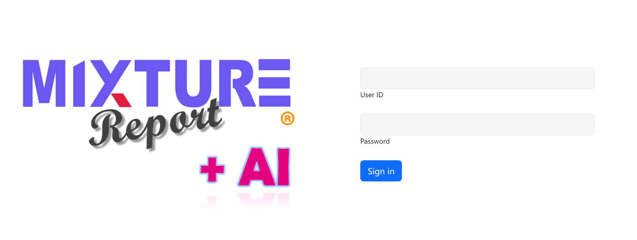 MIXTUREシステムURLにブラウザからアクセスしてください。ログイン画面が表示されます。